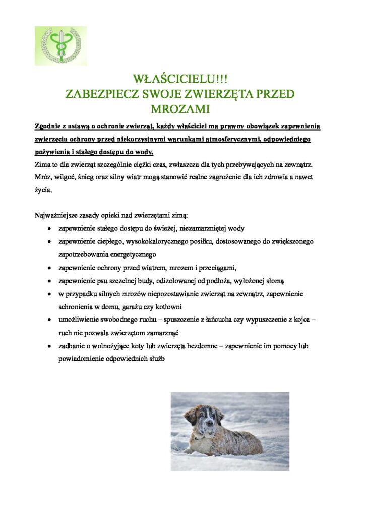 Właścicielu! Zabezpiecz swoje zwierzeta przed mrozami
